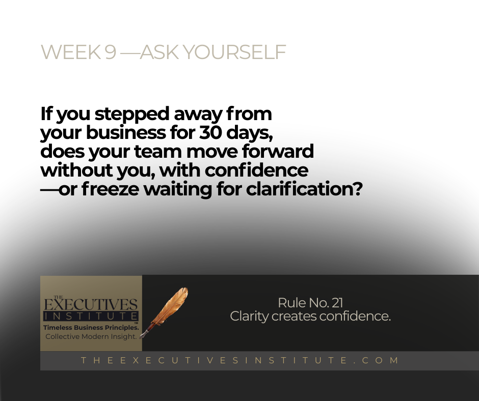 If you stepped away from your business for 30 days, would your team move forward with confidence—or freeze waiting for clarification?