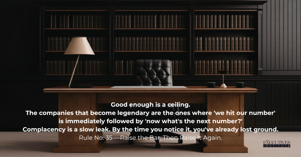 This rule reminds leaders that the bar is never fixed. Raise it, reach it, and then raise it again.