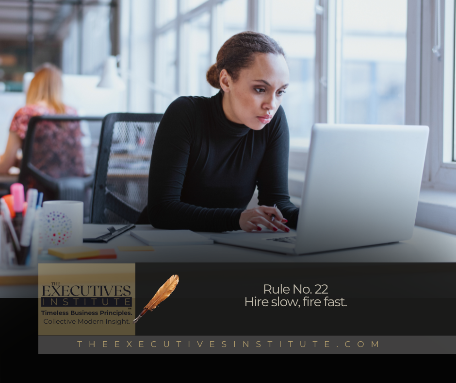 Rule No. 22 —Hire slow, fire fast helps business leaders…